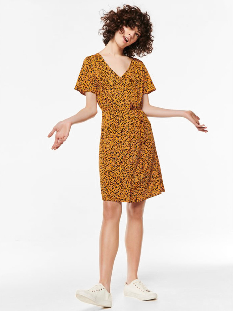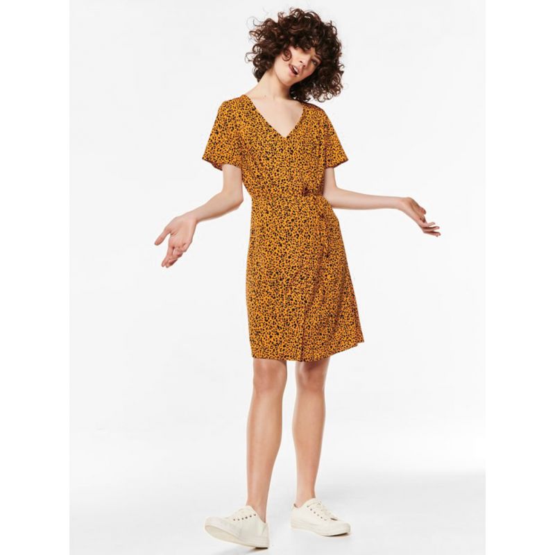 Barva: oranžová Vzor: zvířecí Délka: krátká Střih: áčkový Zapínání: knoflíky Materiál: 100 % polyester