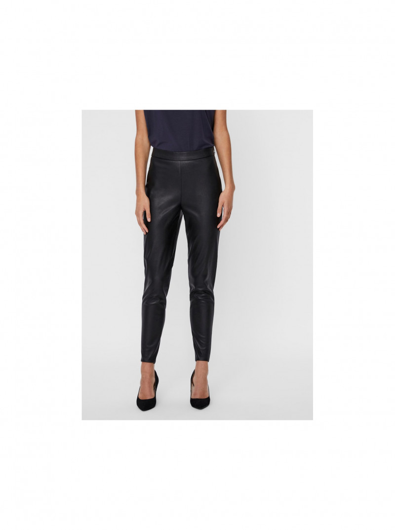 Barva: černá Střih: skinny fit Délka: regular Výška pasu: středně vysoký pas Materiál:  hlavní část - 100 % polyester povrchová úprava - 100 % polyuretan