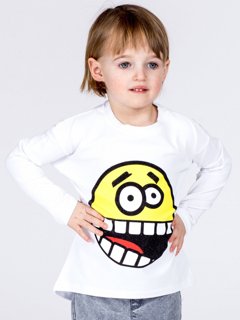 Bavlněná dětská halenka s bílým emotikonovým potiskem