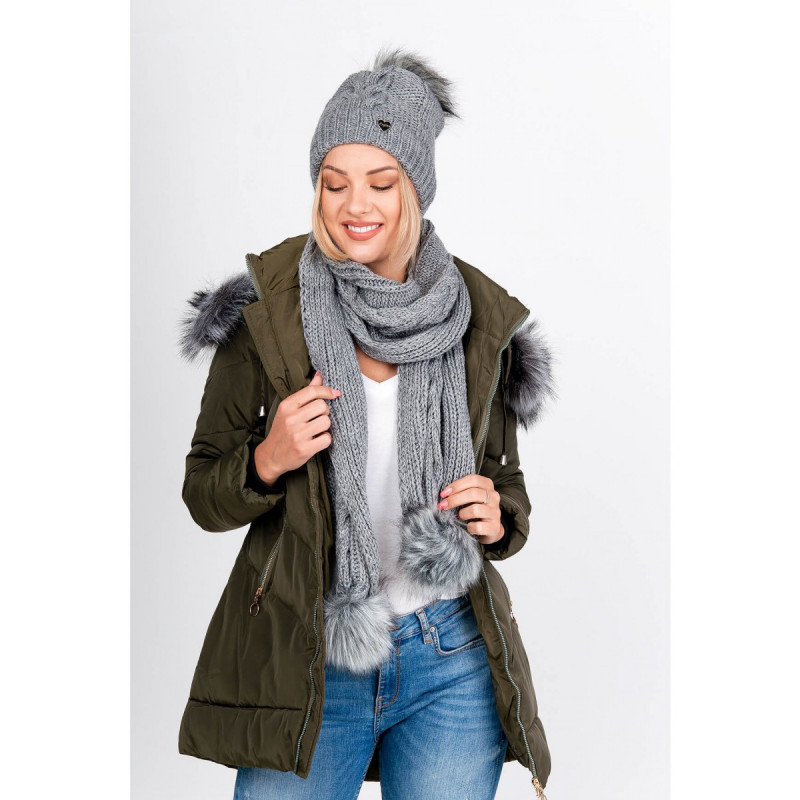 Dámský zimní set čepice + šála s bambulemi - šedá,