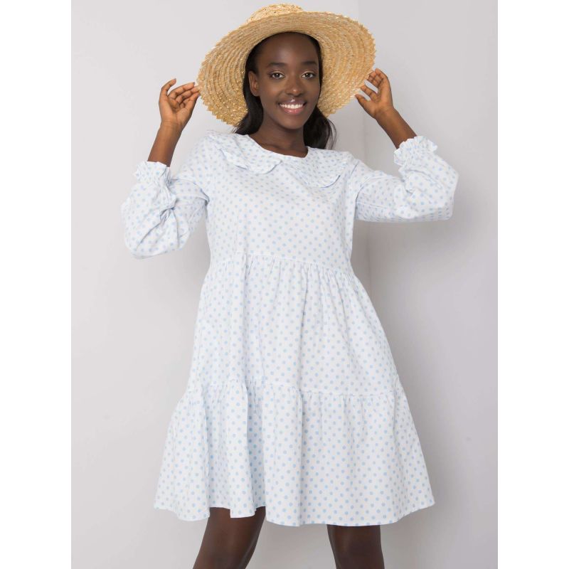 Bílé a modré puntíkované šaty od Valeria RUE PARIS