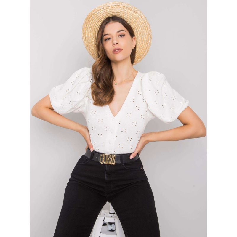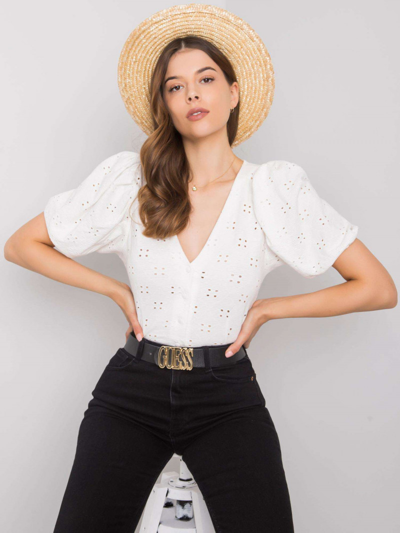 RUE PARIS Bílá halenka s trojúhelníkovým výstřihem .