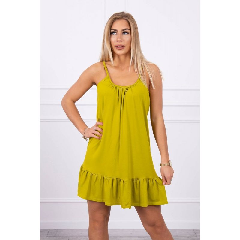 Představujeme vám módní šaty. Šaty s tenkými ramínky, které lze zkrátit zavazováním . Šaty ve spodní části mají volán. Šaty jsou vyrobeny z vysoce kvalitního materiálu. Velikost je univerzální a bude vhodná pro dámy ve velikostech S, M nebo L.