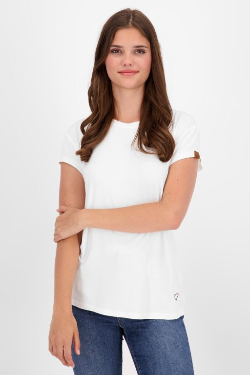 Alife and Kickin MimmyAK A White je jednoduché a pohodlné dámské tričko v bílé barvě. Má klasický střih s prodlouženou délkou, kulatý výstřih a krátké rukávy. Zdobí ho roztomilé logo ve tvaru srdce na boku a kruhové logo na zádech. Perfektně se kombinuje, hodí se k sukni i ke kalhotám. Je vyrobené z příjemné splývavé viskózy s příměsí elastanu a stane se určitě nepostradatelným základním prvkem vašeho letního šatníku.