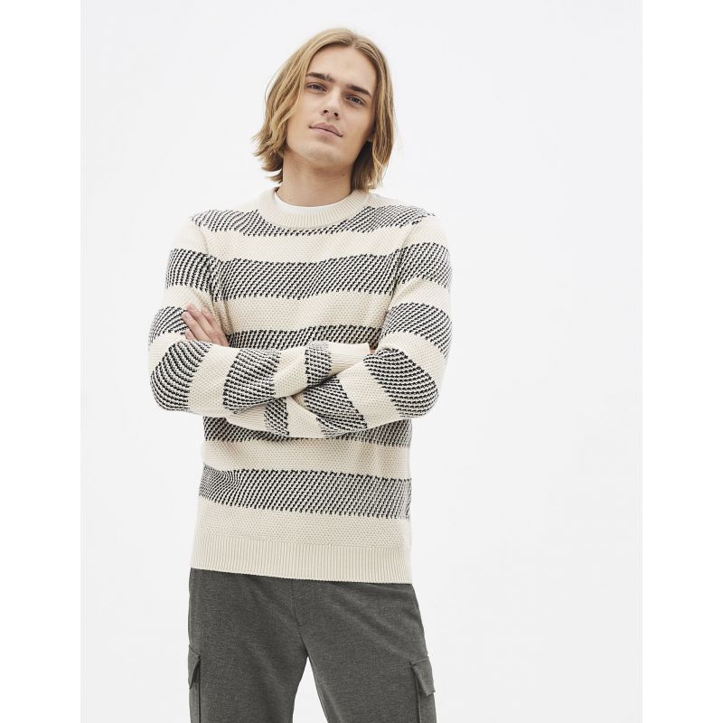 Pruhovaný svetr s kulatým výstřihem. Drobný vzor. 100% bavlna. Materiál: 100% Bavlna