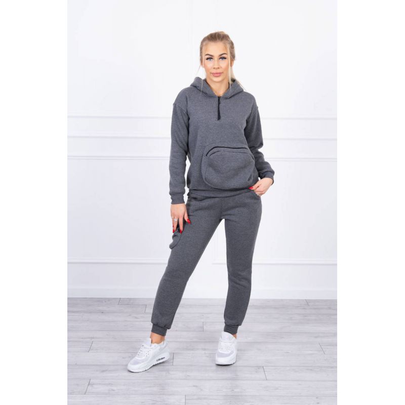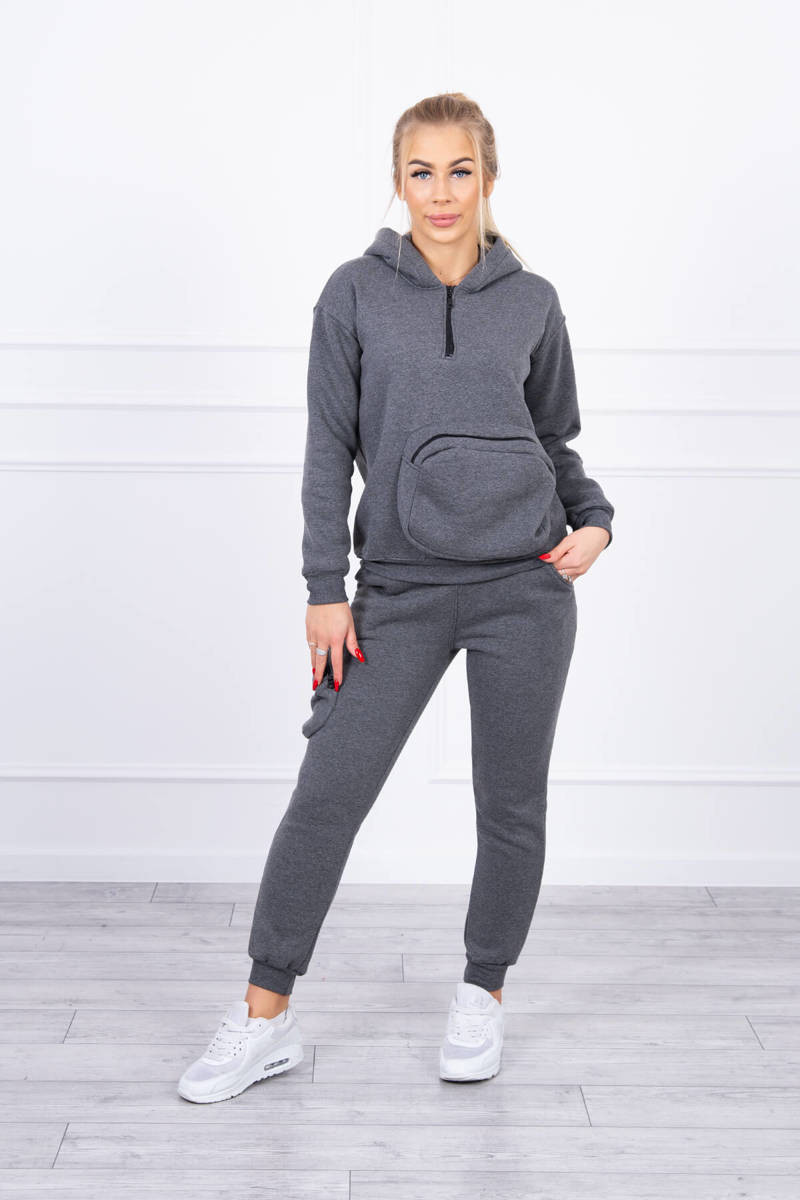 Zateplená souprava s ozdobnou kapsou grafitová melanž