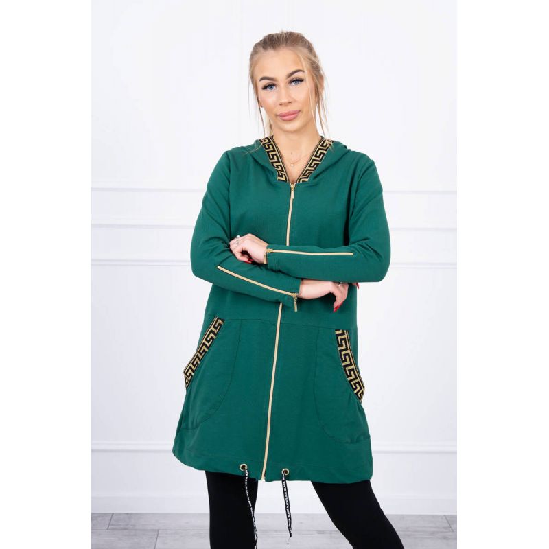 Představujeme vám pohodlnou dlouhou mikinu. Mikina má zapínání na zip a ozdobné pásky na kapsách a kapuci. Mikina je vyrobena z vysoce kvalitního materiálu. Velikost je univerzální a bude vhodná pro dámy ve velikostech S, M nebo L.