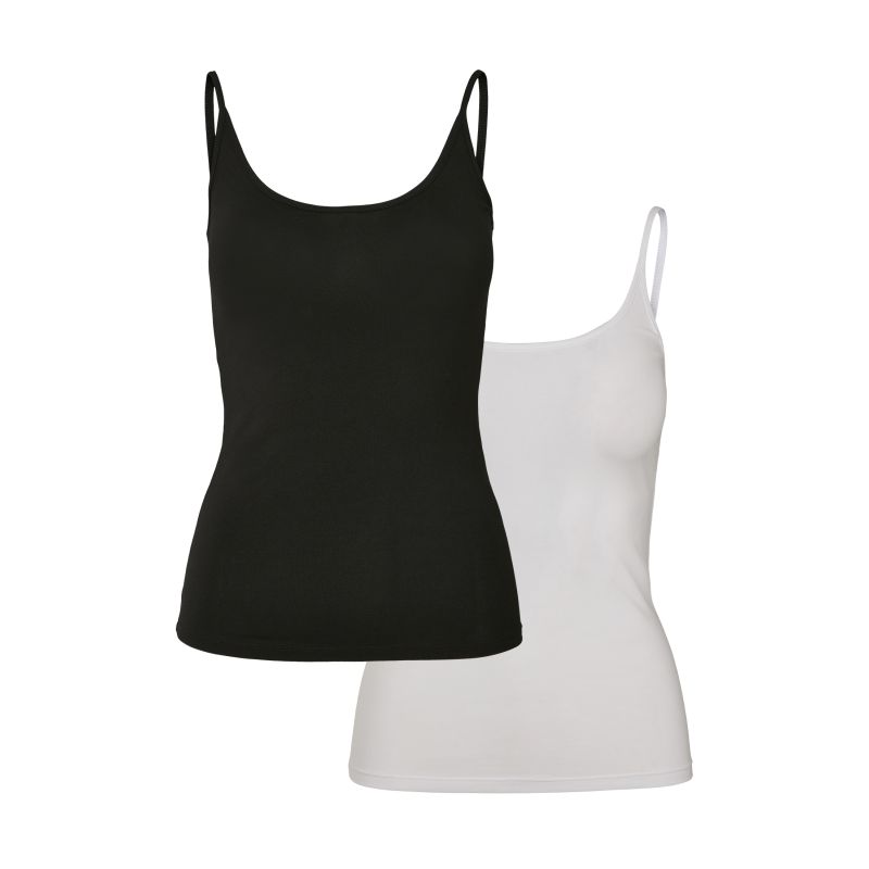 Jak je známo, mít základy je nutnost. Tyto pohodlné bavlněné topy mají integrované malé množství elastanu, aby nabízely ideální střih. Sedí na postavě, jsou dlouhého střihu a sahají přes hýždě. Úzká špagetová ramínka a hluboké výřezy vpředu i vzadu umožňují dostatek vzduchu a slunce k pohlazení vaší pokožky. Dvojité balení obsahuje horní část v černé a jednu v bílé barvě.