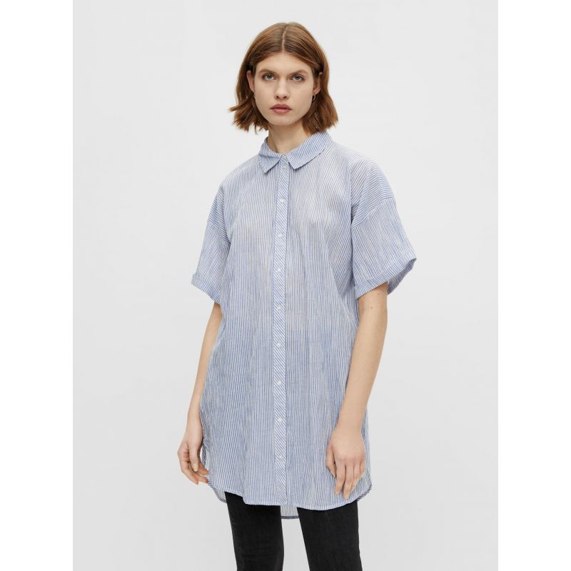 Světle modrá dlouhá pruhovaná košile Pieces Terra - Dámské