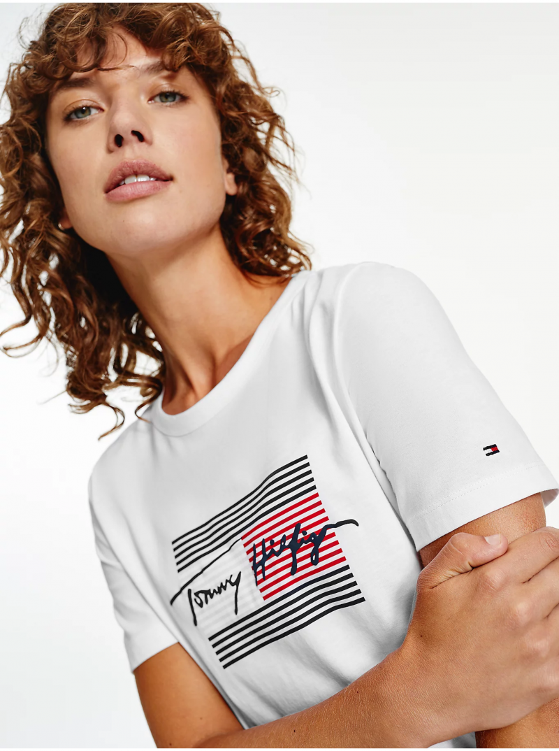 Bílé dámské tričko s potiskem Tommy Hilfiger - Dámské