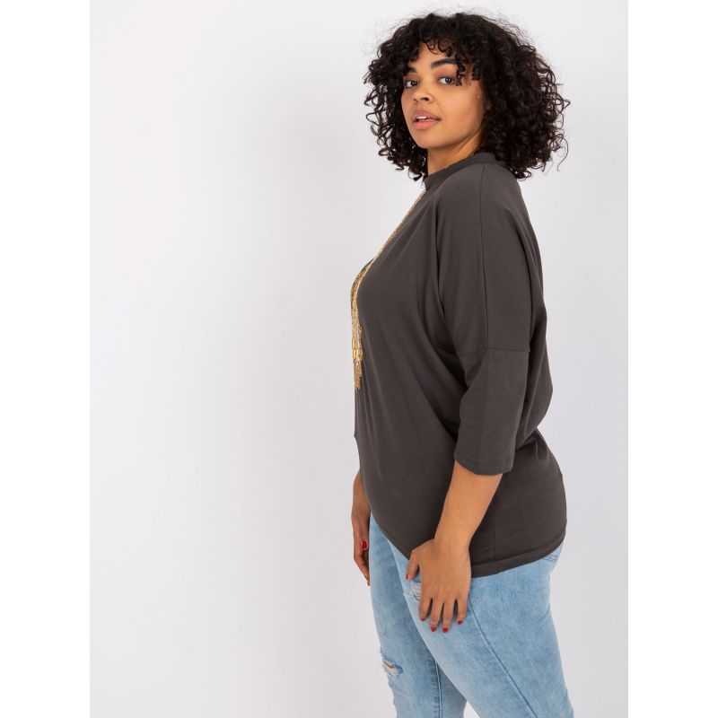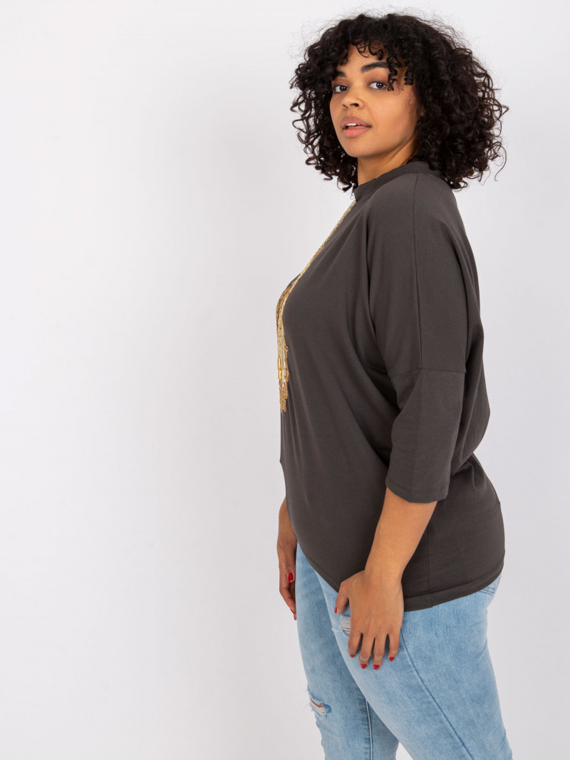Rozměry halenky jedné velikosti jsou měřeny naplocho: šířka v podpaží - 76 cm, celková délka - 66 cm, délka rukávu - 45 cm.
