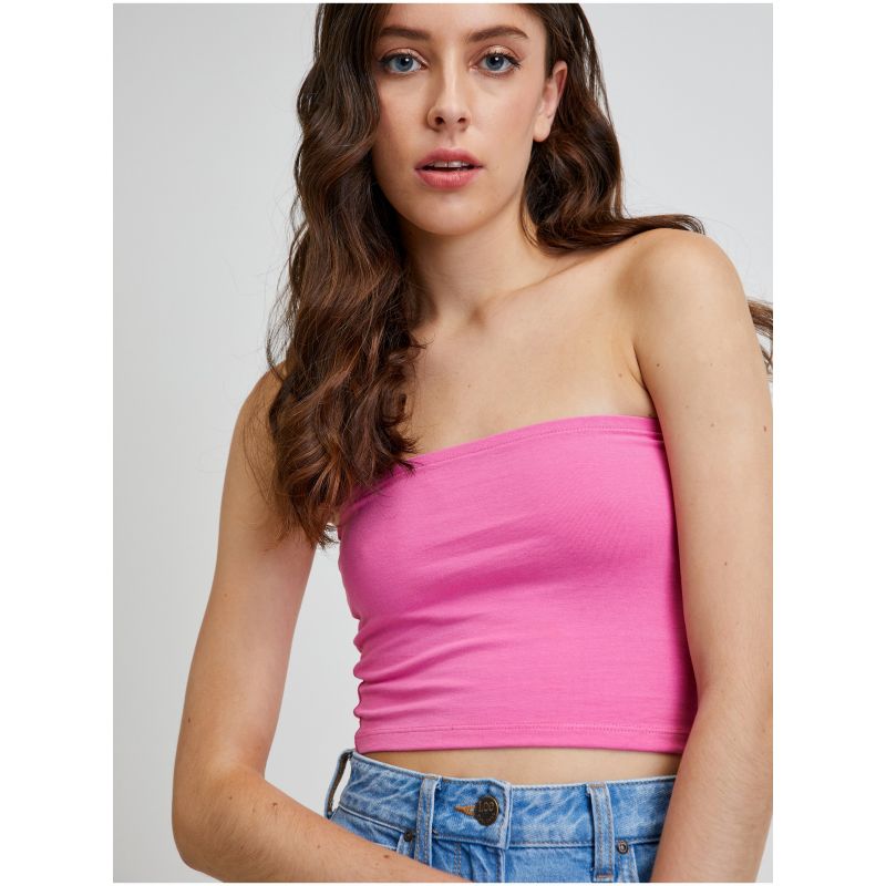 Tmavě růžový crop top Noisy May Brandon - Dámské