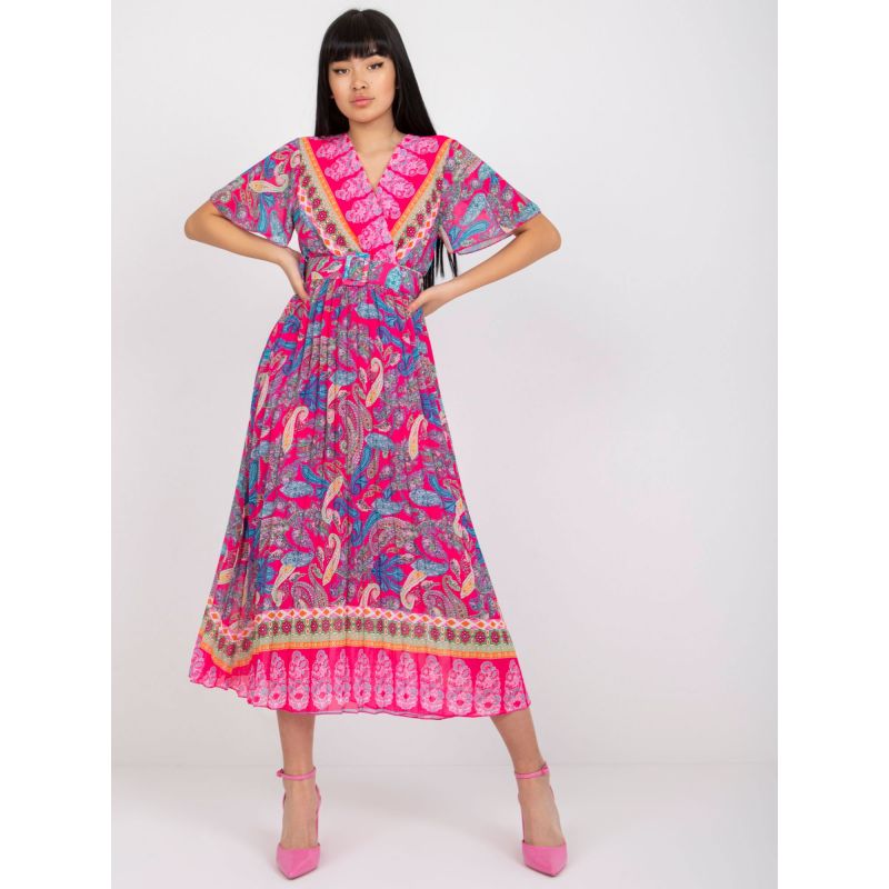 Jednovelikostní růžové plisované šaty s orientálním motivem