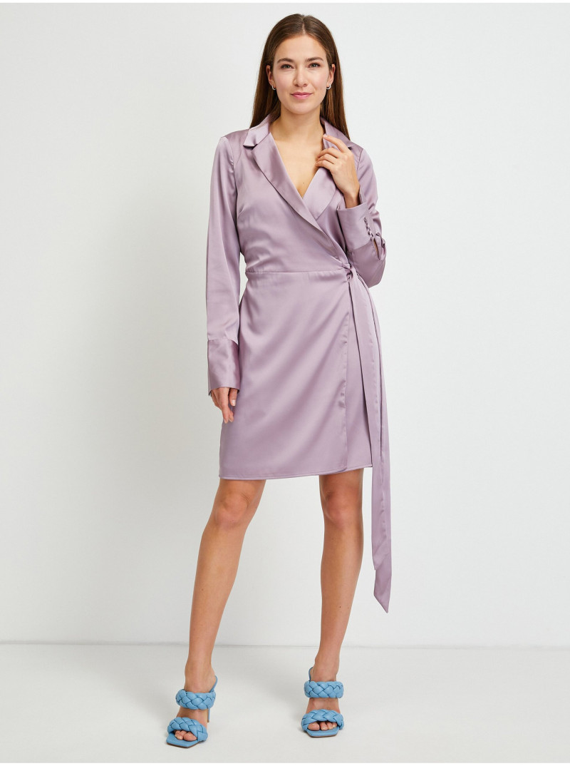 Světle fialové dámské lesklé zavinovací šaty Guess - Dámské