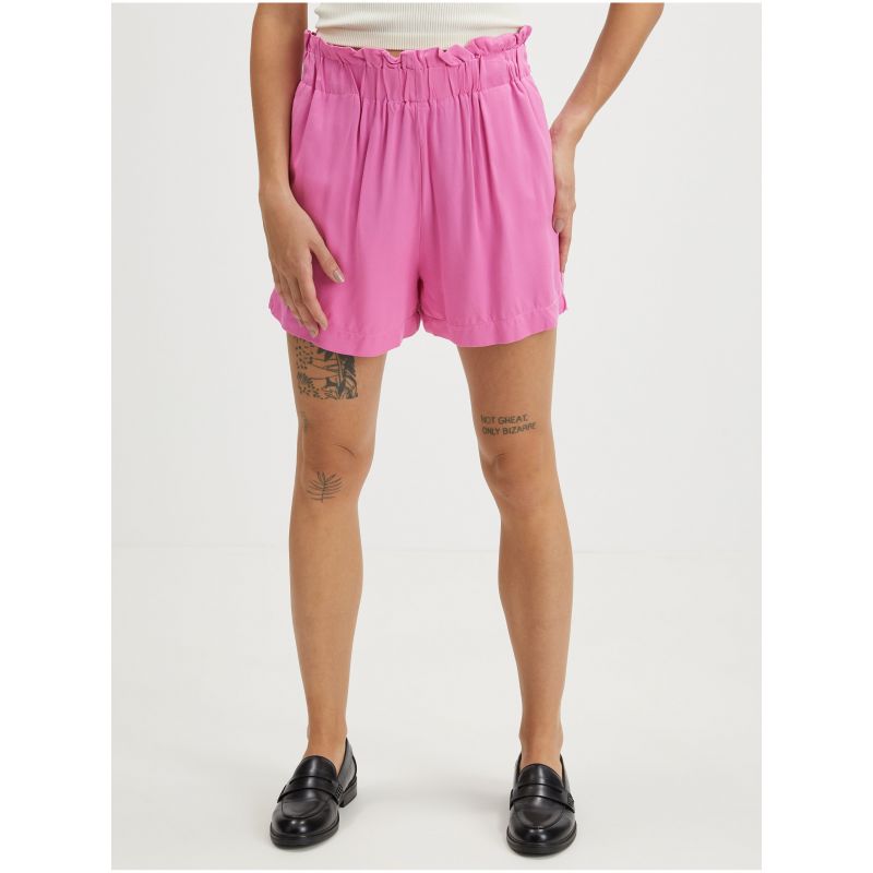 Model: Caly Barva: růžová Střih: rovný Délka: krátká Výška pasu: vysoký pas Zapínání: do gumy Něco navíc: horní část - ozdobné lemy Udržitelnost: ekologický materiál Materiál: 100 % viskóza LENZING™ ECOVERO™ Modelka má na sobě velikost: S Modelka měří: 172 cm