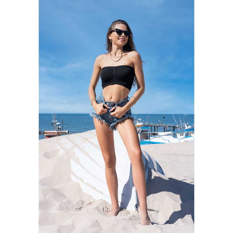 Toto léto musíte mít!Černý elastický top, který můžete nosit přes spodní prádlo nebo přes plavky. Skvělý doplněk k mnoha různým stylům. Bez ramínek, měkké, perfektně sedí na těle bez změny polohy. Látka s jemným, ozdobným volánkem, na přední straně vhodné prošití, díky kterému celek působí zajímavě a sexy. Složení: 93% polyamid, 7% elastan.