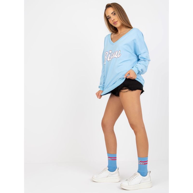 Světle modrobílá mikina s potiskem a výstřihem do V