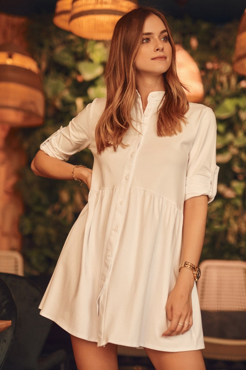 Knoflíkové šaty s nastavitelnými rukávy bílé FK600 - Velkoobchod - Online - Online velkoobchod s dámským oblečením