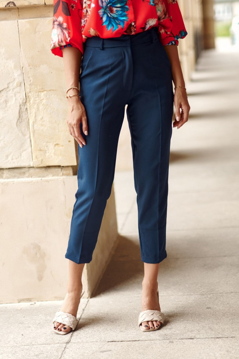 Elegantní tmavě modré mačkané kalhoty MP45120 - Velkoobchod - Online - Online velkoobchod s dámským oblečením