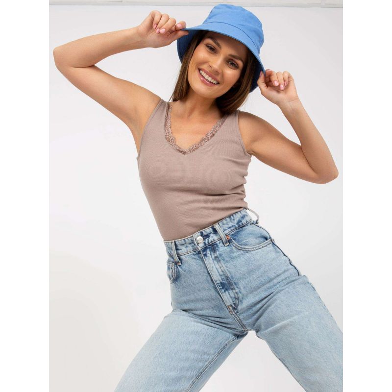 Tmavě béžový žebrovaný top s výstřihem do V RUE PARIS