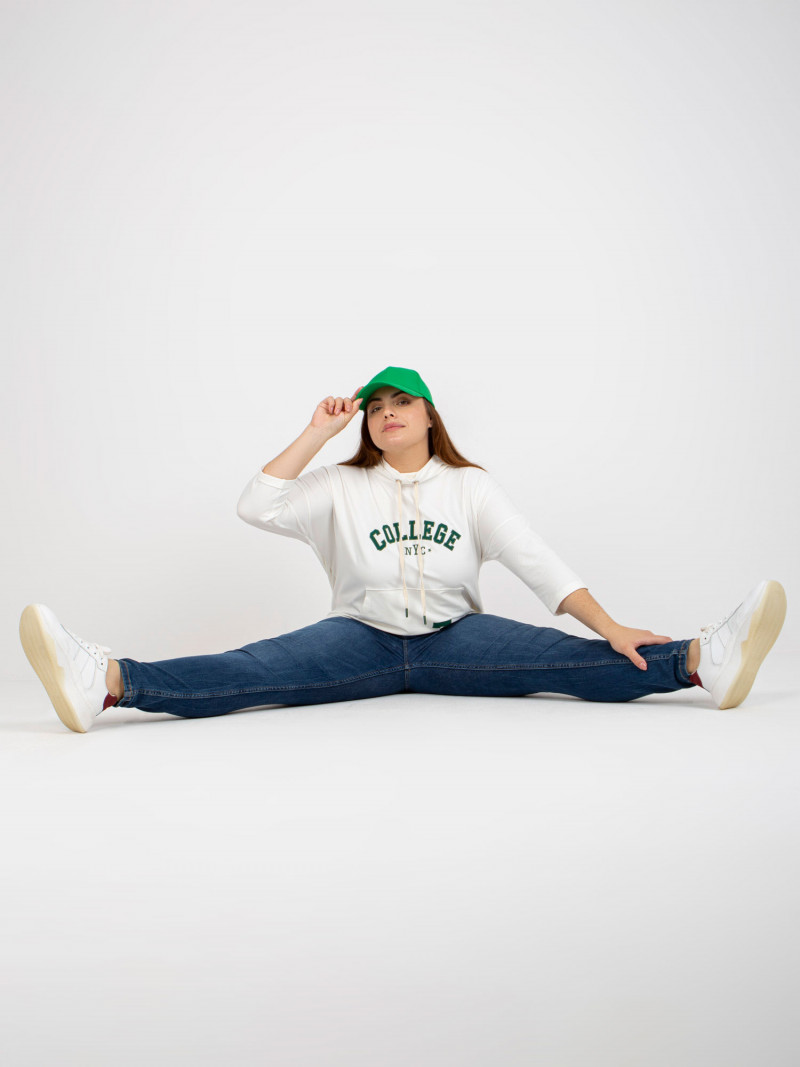Rozměry halenky jedné velikosti jsou měřeny naplocho: šířka v podpaží - 68 cm, délka rukávu - 43 cm, celková délka - 72 cm.