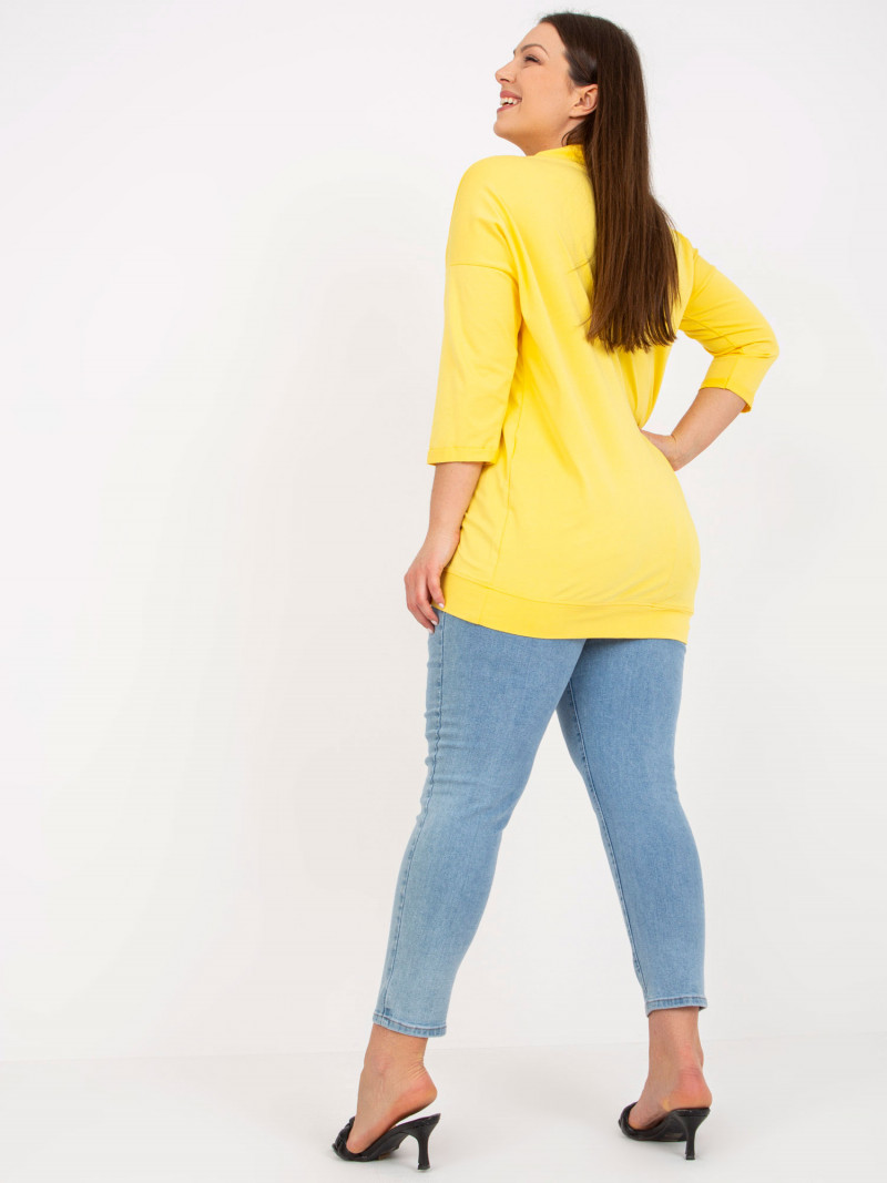 Rozměry halenky jedné velikosti jsou měřeny naplocho: šířka v podpaží - 68 cm, délka rukávu - 43 cm, celková délka - 72 cm.