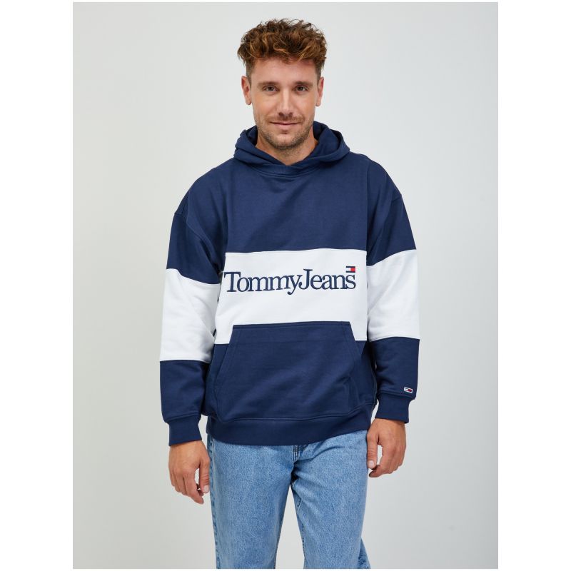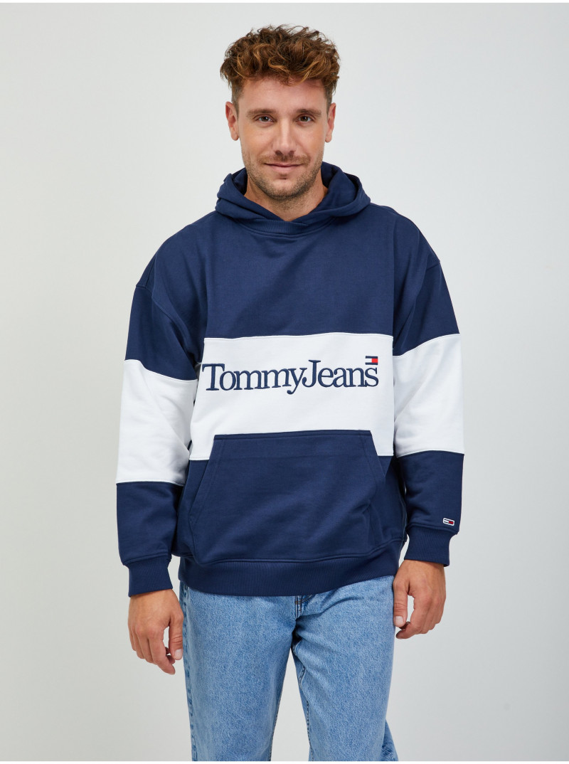 Bílo-modrá pánská mikina s kapucí Tommy Jeans - Pánské