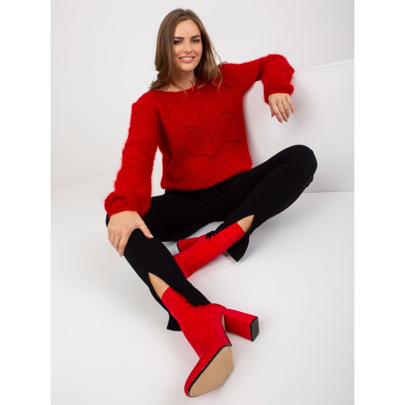 Tmavě červený nadýchaný klasický svetr s vlnou OCH BELLA