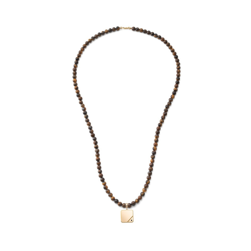 - Náhrdelník s kulatými kamínky tygřího oka, čtvercový přívěsek s černým krystalem