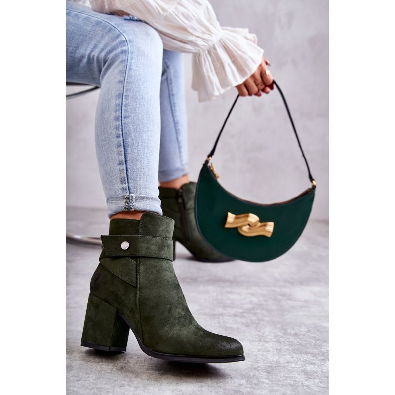 Klasické dámské kozačky vyrobené z ekologického semiše. Na svršku mají ozdobný proužek. Zapínání na boku na zip. Boty jsou nasazeny na podpatku ve formě sloupku. Nos mandlového tvaru. Tento model vás zahřeje v chladnějších dnech díky zateplení v podobě deky na boty. Tyto boty by neměly chybět ve vašem šatníku! Při výběru velikosti použijte tabulku velikostí.