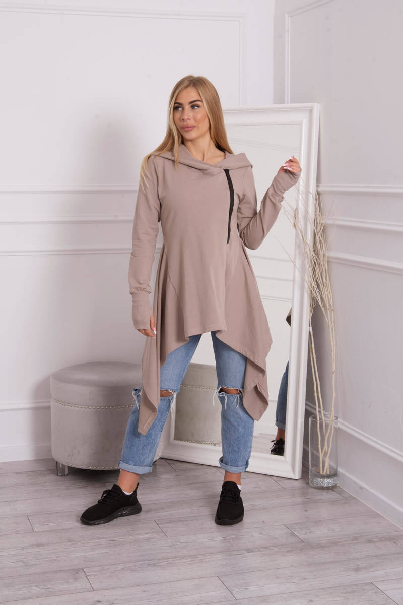 Představujeme vám pohodlnou mikinu. Mikina má boční zip a delší strany. Mikina je vyrobena z vysoce kvalitního materiálu. Velikost je univerzální a bude vhodná pro dámy ve velikostech M, L nebo XL. Materiálové složení: 90% bavlna, 10% elastan Rozměry: Šířka v podpaží: 45 cm Délka rukávu od podpaží: 60 cm Celková délka: 77 cm / 115 cm