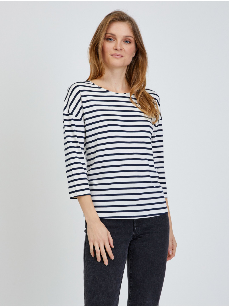 Krémové pruhované tričko s tříčtvrtečním rukávem ORSAY - Dámské