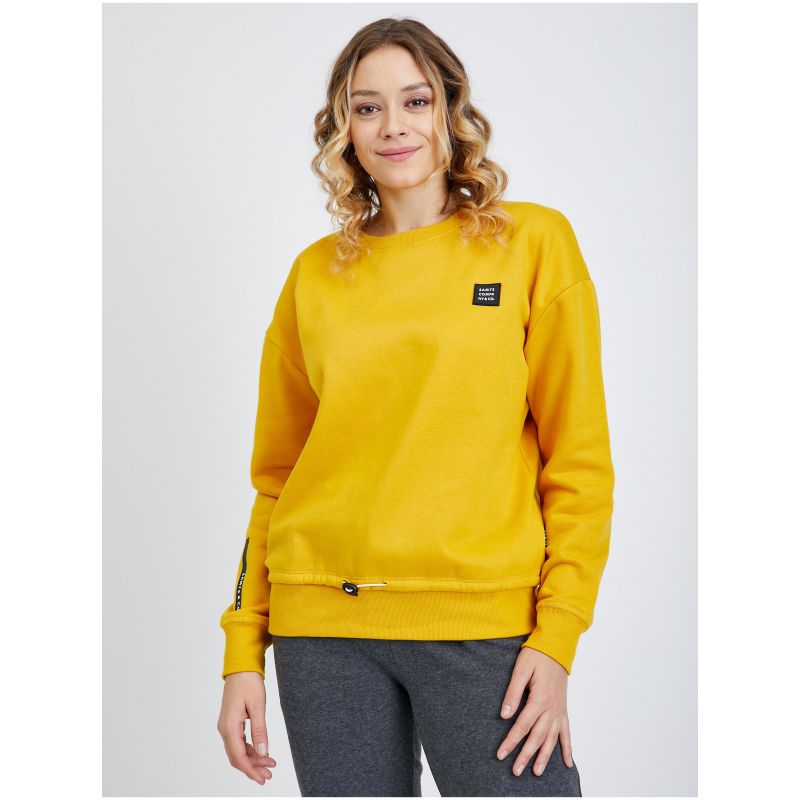 Model: Rodven Barva: žlutá Vzor: rukáv - s nápisem Střih: regular fit Výstřih: kulatý Rukáv: dlouhý Zapínání: bez zapínání Něco navíc: nášivka Kapsy: bez kapes Specifikace: stahování spodního lemu Materiál: 60 % bavlna, 40 % polyester Typ materiálu: bavlna Modelka měří: 175 cm Modelka má na sobě velikost: M