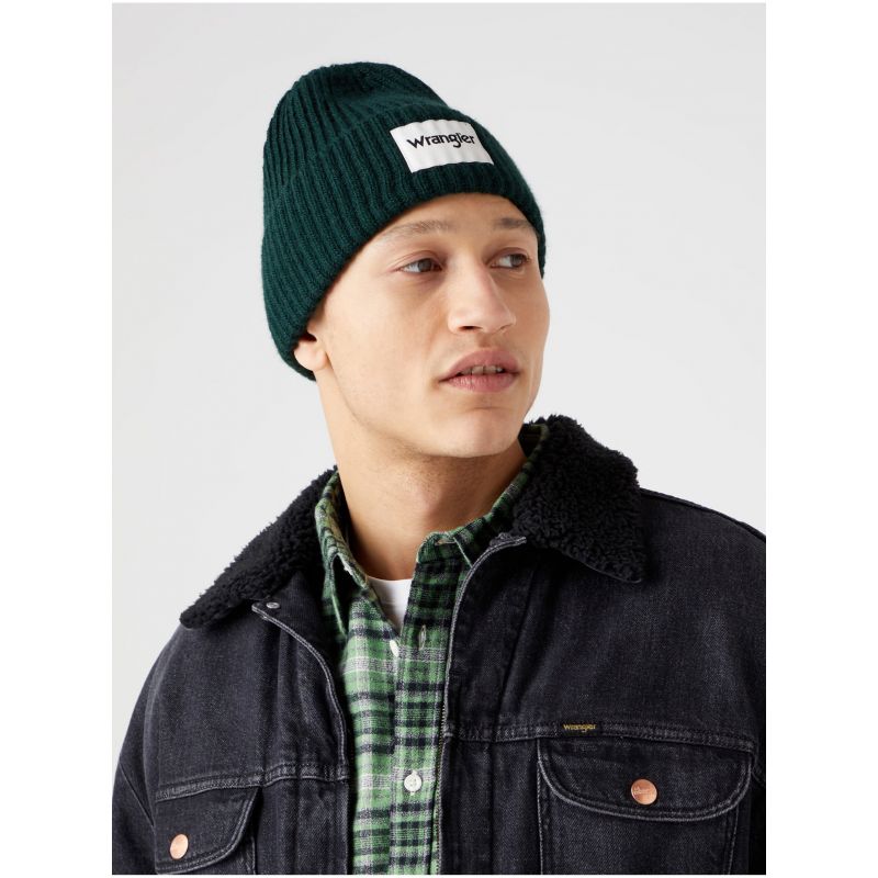 Tmavě zelená pánská žebrovaná zimní čepice Wrangler - Pánské