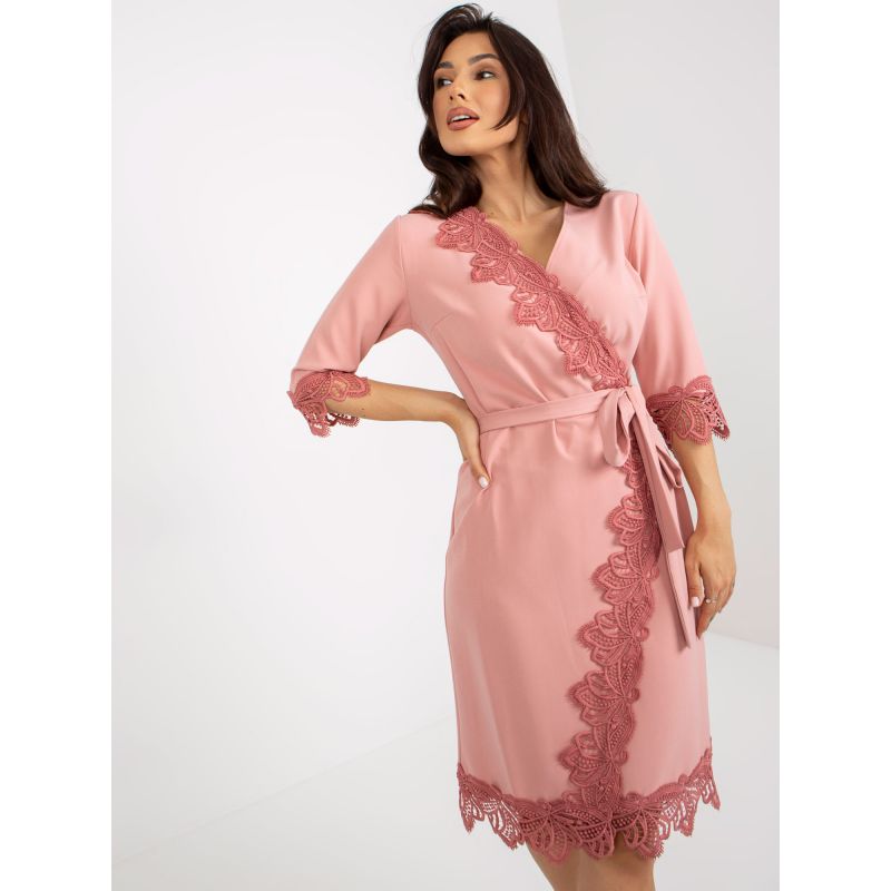 Zaprášené růžové koktejlové šaty s řasením a 3/4 rukávy