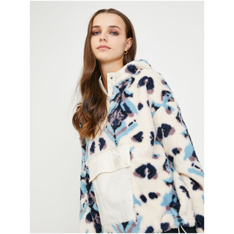 Modro-krémová dámská vzorovaná bunda z umělého kožíšku Picture D - Dámské