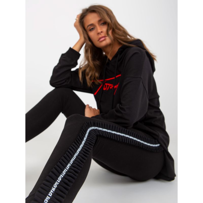 Modelka má na sobě velikost M. Rozměry modelky: výška 176 cm, prsa 85 cm, pas 64 cm, boky 92 cm.   Legíny velikosti M měřeny naplocho: šířka pasu - 36 cm, výška pasu - 26 cm, celková délka - 101 cm.