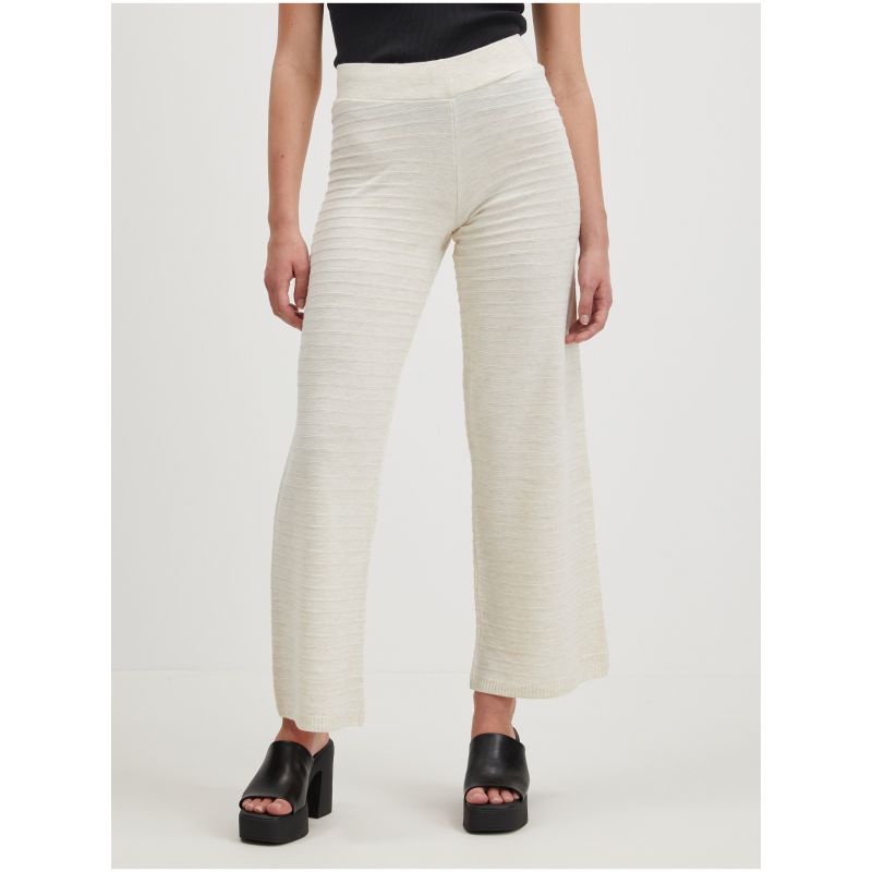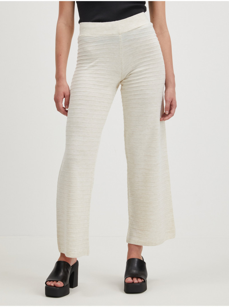 Krémové dámské žebrované široké kalhoty ONLY Cata - Dámské