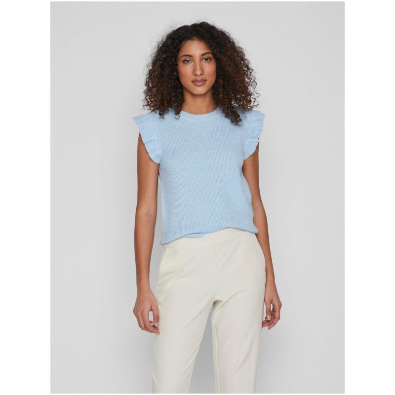 Světle modré dámské žebrované tričko VILA Ril - Dámské