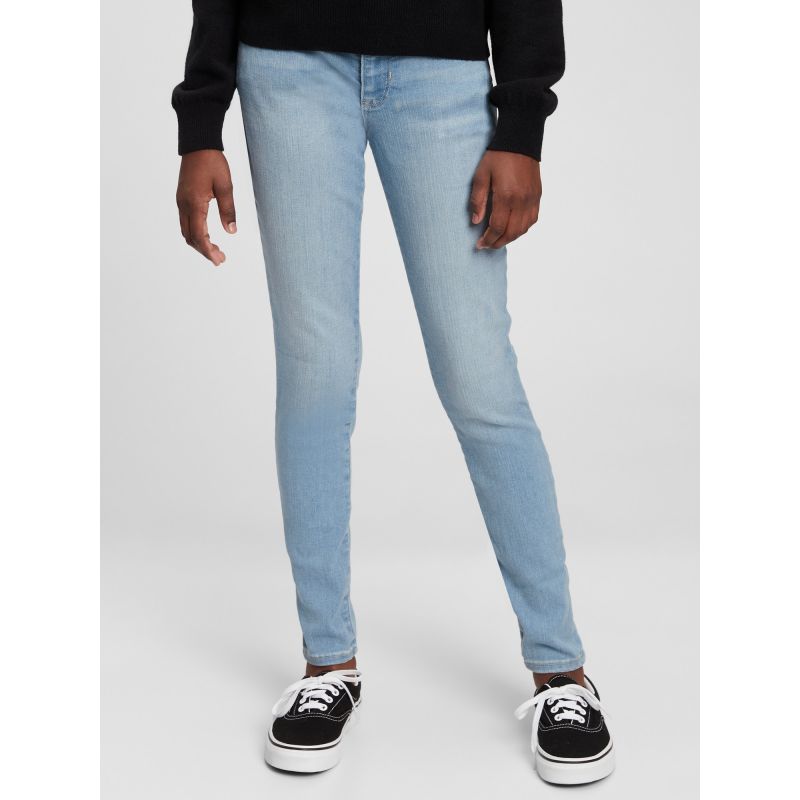 Dívčí džíny super skinny střihPas se zapínáním na zip a háčekTunýlek s všitou gumou, kterou lze regulovatPoutka na pásekTechnologie Washwell.
