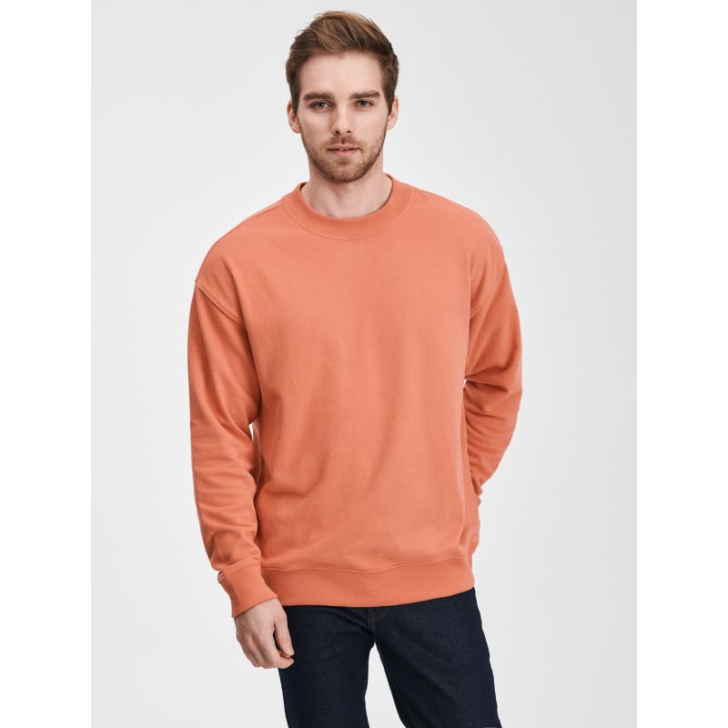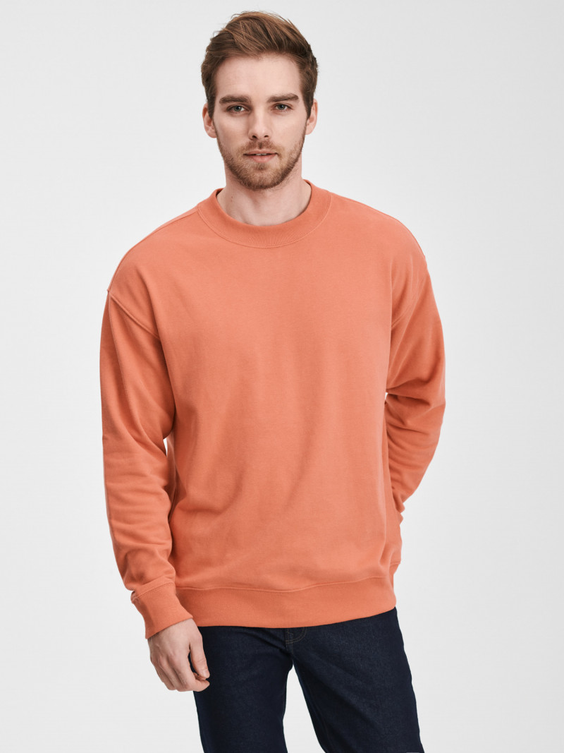 Pánská mikina. Střih bez zapínání. Mírně spadlé rukávy. Široké a pružné náplety. Výrazná barva. 9% recyklovaný polyester.