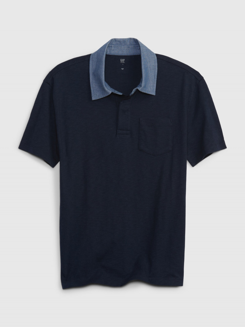 Chlapecké polo tričko s krátkým rukávem. Límec v kontrastní barvě. Zapínání na knoflíky. Na hrudi malá kapsička. 100% bavlna.