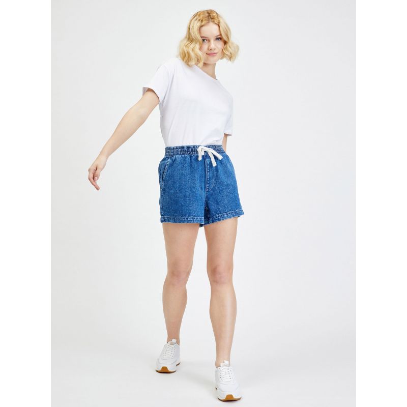 Dámské džínové kraťasy. Pružný pas se stahovací šňůrkou Šikmé boční kapsy. Našité zadní kapsy. 5% recyklovaná bavlna.