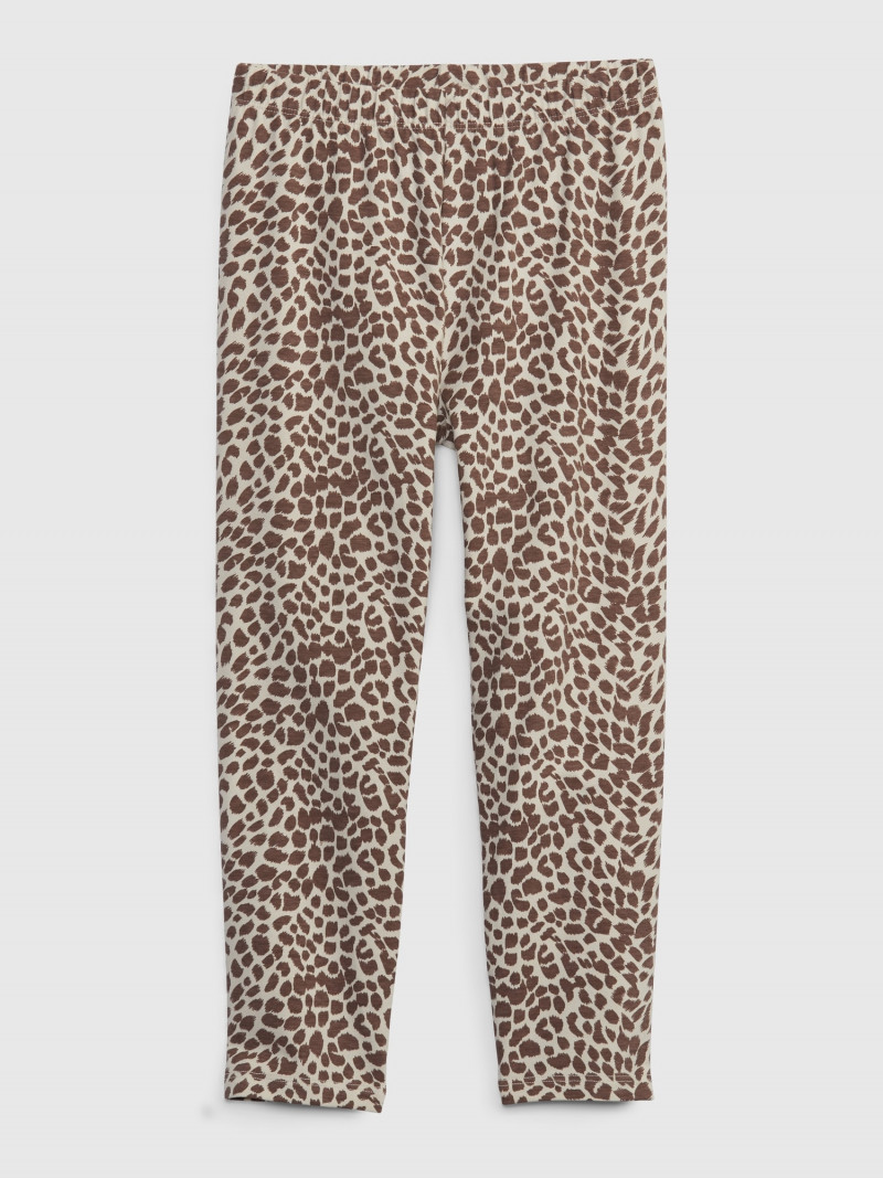 Dětské měkké úpletové capri legíny. Vyrobeny z 96% organické bavlny. Pružný pas a upnutý střih. Leopardí vzor.