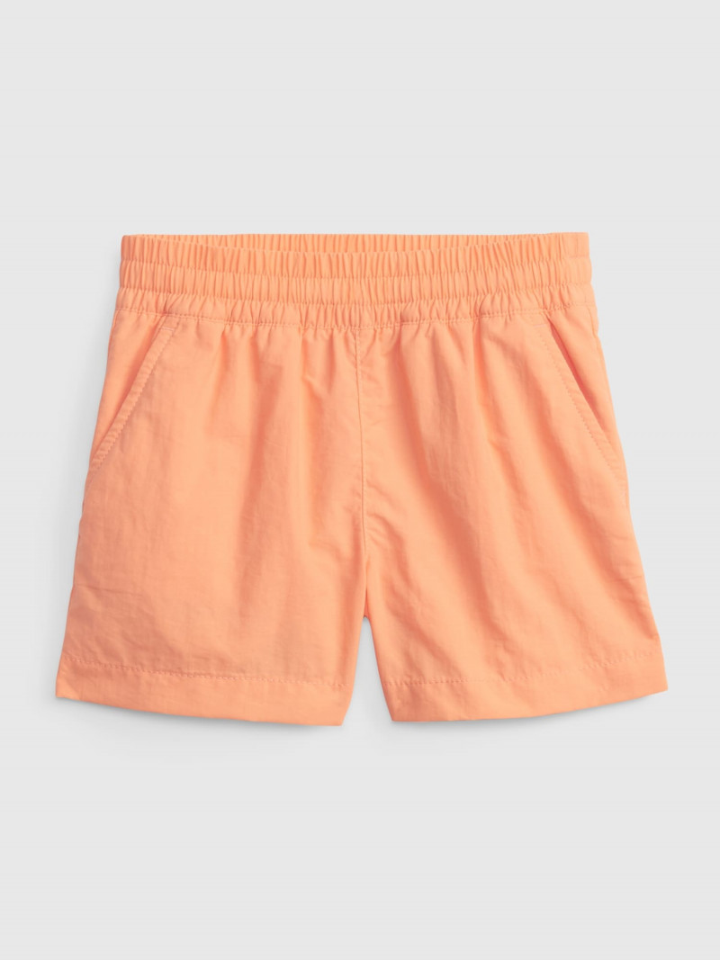 Dětské jednobarevné kraťasy. Natahovací s pružným pasem. Přední šikmé kapsy. Volnější střih nohavic. 100% nylon.