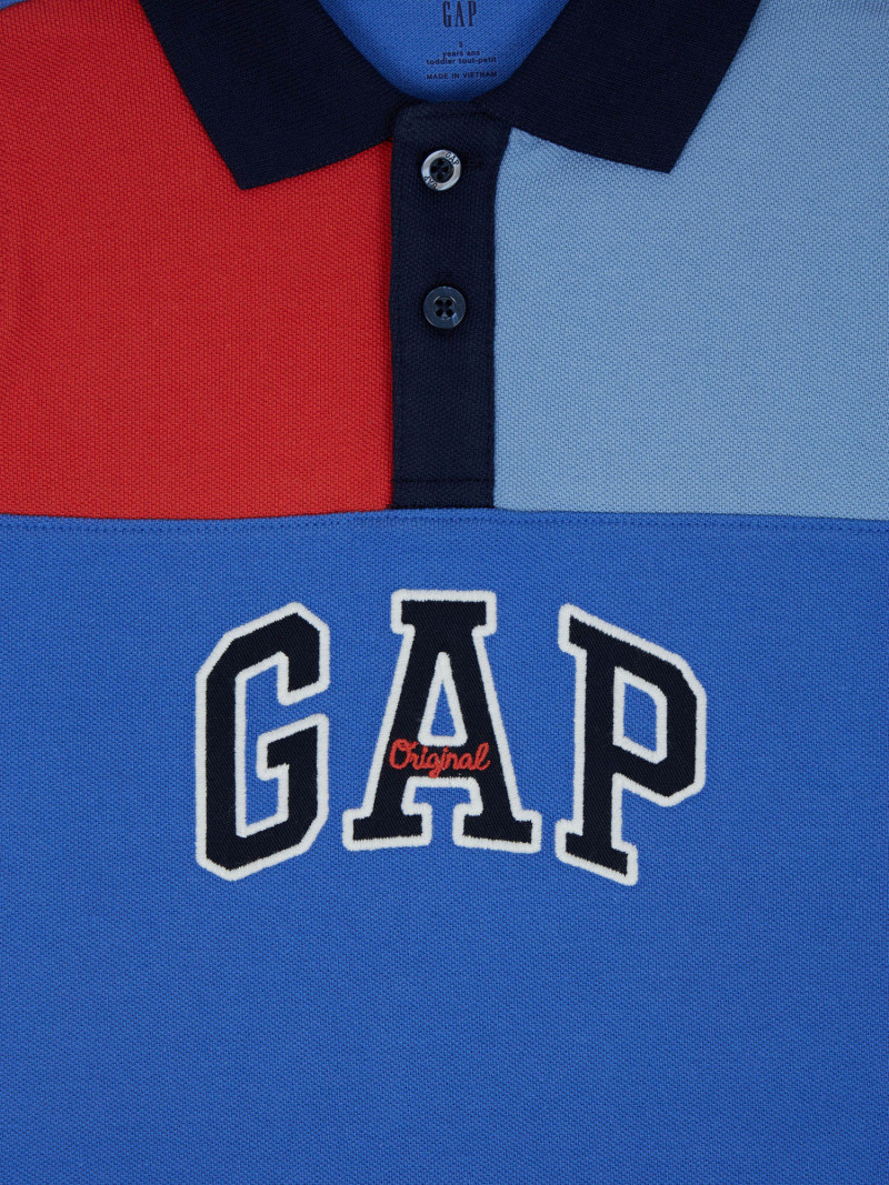 Dětské tričko s límečkem. Logo GAP original na přední straně. U krku zapínání na knoflíčky. Různě barevné části. 100% bavlna.