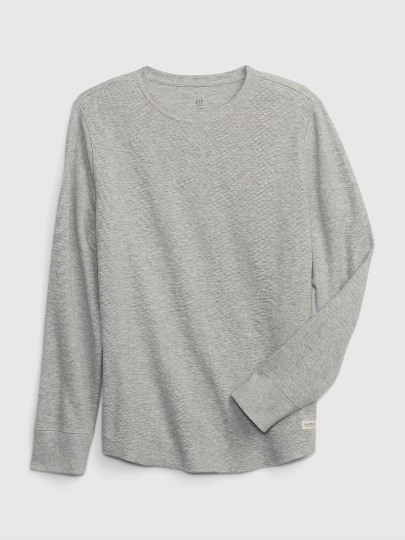 Dětské bavlněné tričko. Dlouhý rukáv a kulatý výstřih. Rukávy s náplety a zaoblený spodní lem. 100% bavlna.