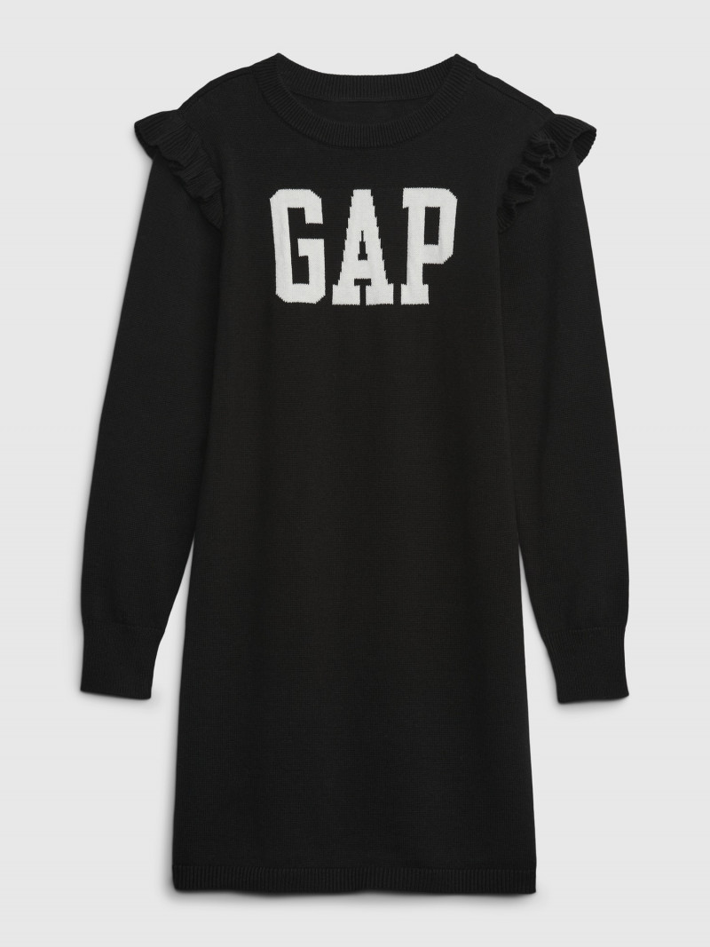 Dívčí šaty z měkké pleteniny. Bílé logo GAP. Dlouhé rukávy s volánky na ramenou. Kulatý výstřih ke krku. 100% bavlna.