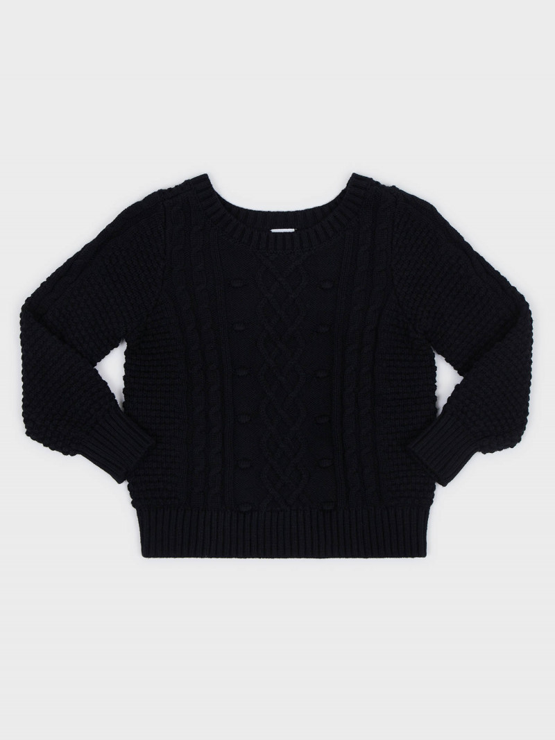 Dětský pletený svetr. Měkká pletenina. Kulatý výstřih a dlouhé rukávy. Pružné žebrované náplety.