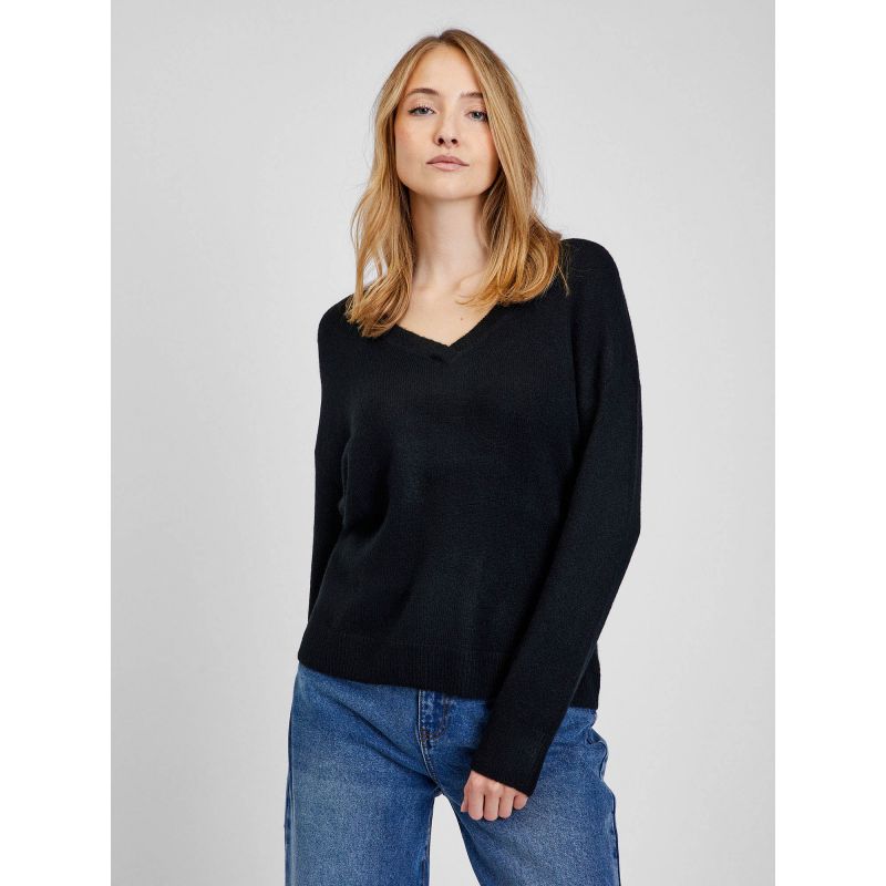Dámský pletený svetr. Výstřih do V. Dlouhé spadlé rukávy. Široké a pružné náplety. Jednobarevný.